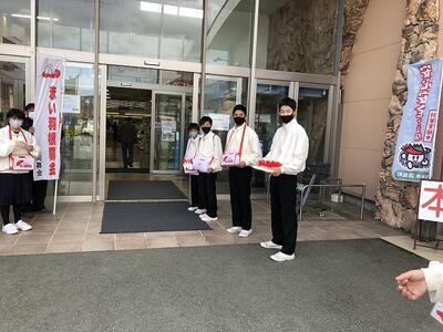10月30日に、高森町社会福祉協議会のご指導のもと、町内のショッピングセンタ-2カ所で街頭募金を行いました。(高森高校、高森中と合同)例年、「すまいるフェスタinたかもり」で行われていたのですが、昨年度に引き続き、本年度も中止になったため、単独で行われました。7、8年生に募集をしたところ、休日にもかかわらず、生徒会長を始め7名が参加。学校のリーダーとしての自覚が育ってきているとうれしく思いました。