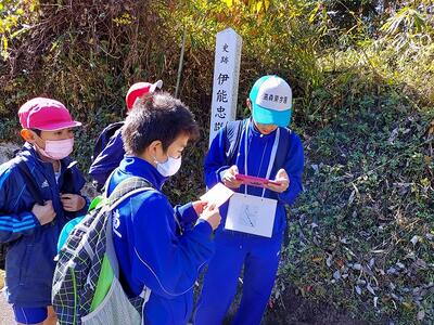 11/19(金)に恒例のS・Mブロック鍛錬遠足を行いました。Sブロックは野尻川上神社へ、Mブロックは草部南部地区の史跡のウォークラリーをしながら学校まで(約17km)歩きました。小春日和で抜けるような青空のもと、多少の疲れを感じながらも、とても楽しい1日を過ごすことができました。