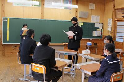 朝の活動の様子です。現在、8年生はハンセン病について学習しています。今日は、教頭先生に菊池恵楓園について話をしていただきました。21日(水)には、町人権教育授業研究会で授業公開(オンライン)する予定です。