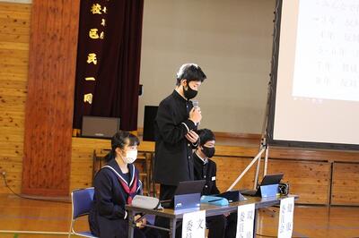 12月14日に自創会(児童生徒会)による総会が行われました。東学園では3~9年生がこの総会に参加します。執行部や各委員会からの提案を受けて、各学年で事前に討議を行い、質問や修正意見などを発表していきました。それに対する答弁も行い、本年度の活動が承認されていきました。