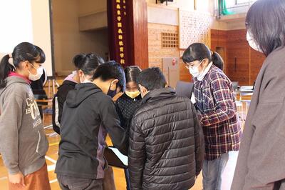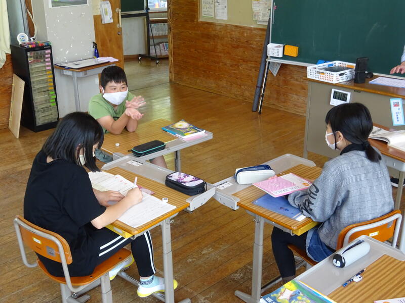 議事の途中でも打ち合わせが行われました。(5、6年)