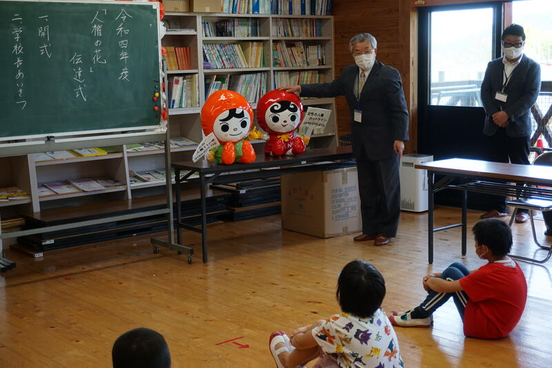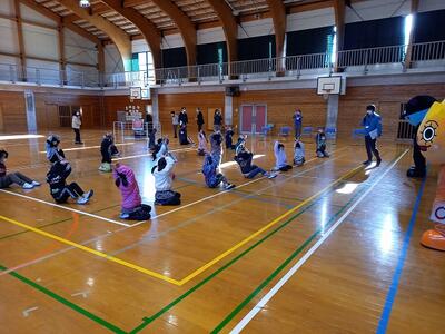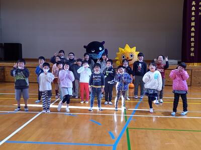 12月23日 阿蘇青少年交流の家の協力の下、早寝早起き朝ご飯の大切さを学ぶ「早寝早起き朝ご飯キャラバン隊」の取組が行われました。参加したのはSブロックの子どもたち。キャラクターも登場し、子どもたちは楽しく学ぶことができました。