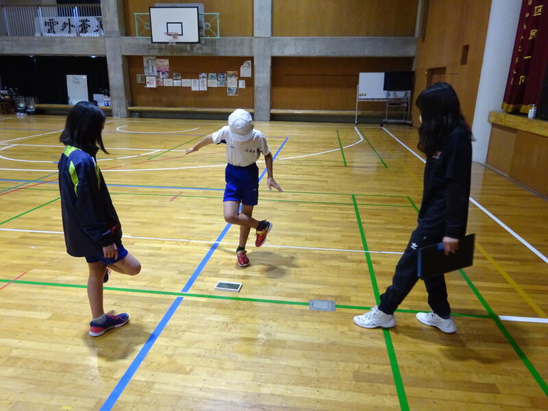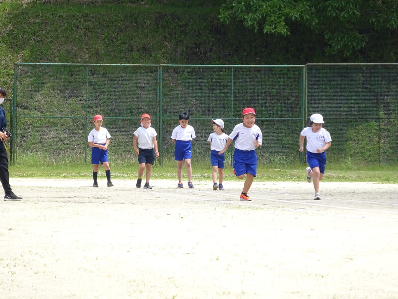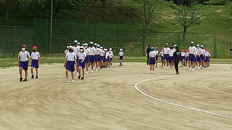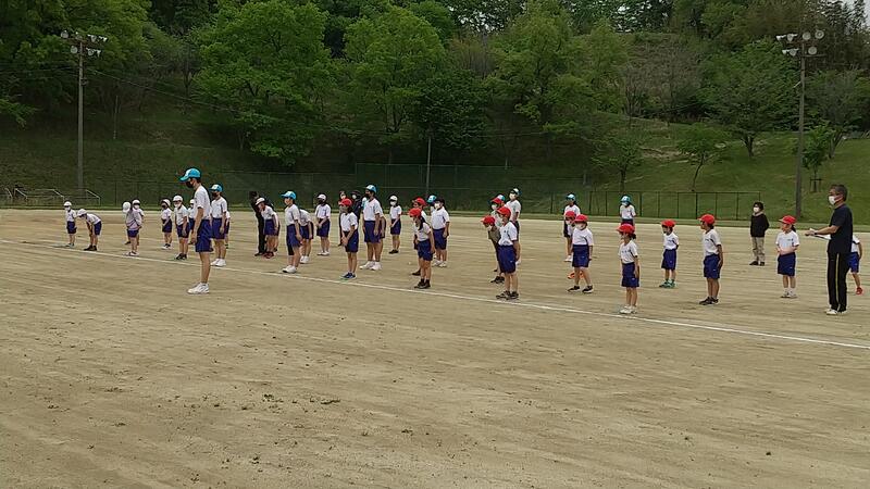 3・4年生の体育の様子です。「うっとるゲーム(ベースボール型のゲーム)」を行いました。攻撃側は打って走って、守備側は走って取って(ボールを取った人の所に集まって座るルールのため)とみんなで楽しみながら学習しました。