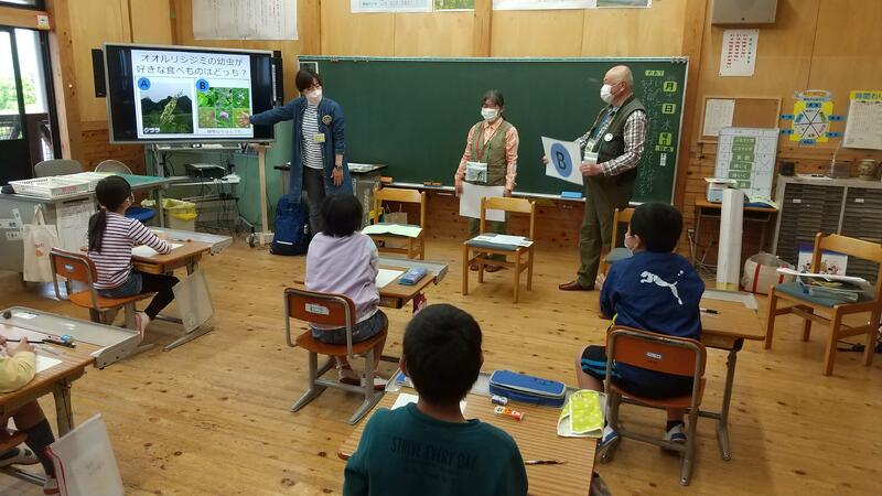 3・4年生の「高森ふるさと学」の学習の様子です。「高森のしぜんやくらし」をテーマとして、地域の野草、オオルリシジミ、地域の暮らしのテーマごとに学年の枠を越えてグループをつくり、課題解決へ向け取り組んでいます。今日は、日本野鳥の会の田中さん、高森推進機構の井上さん、のうかつ(NOKaTs)の瀬井さんに来校いただき、話を伺いました。