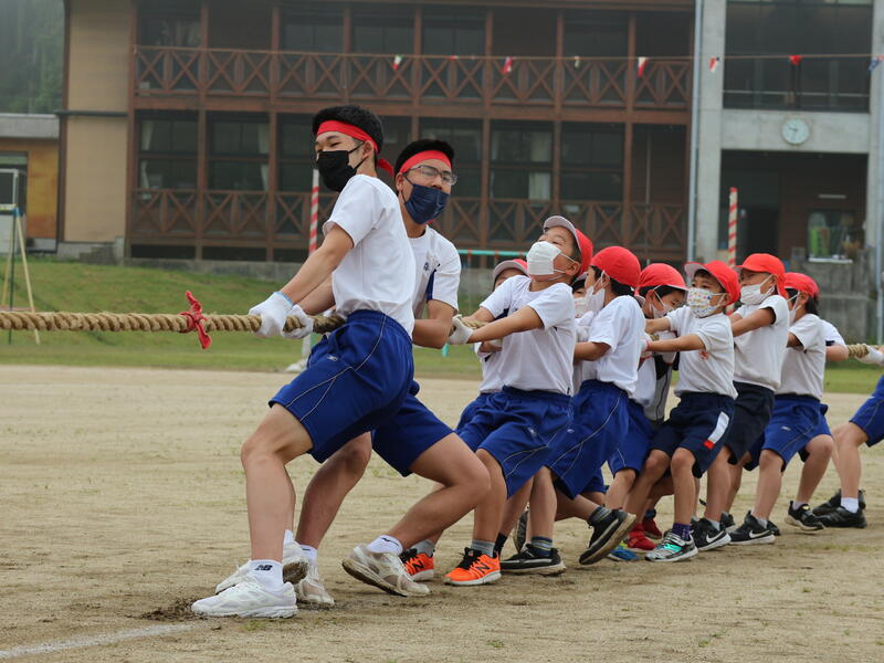 昼休みの様子です。前期課程の児童と後期課程の生徒が一緒に遊びながら昼休みを過ごしました。元気な声が運動場に響き渡っていました。