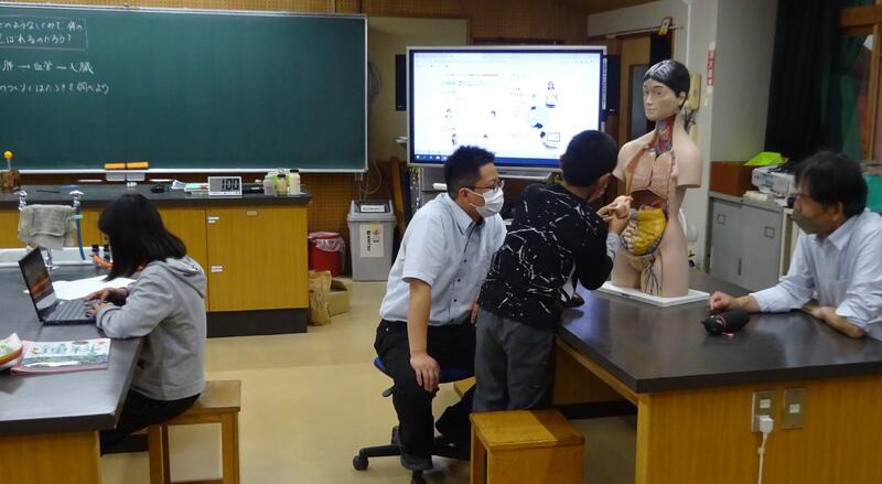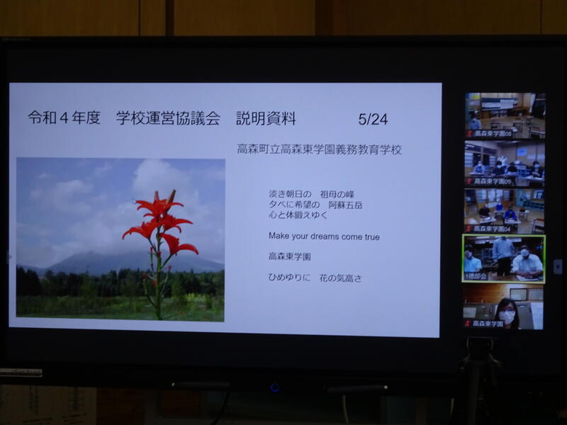 本日午後、甲佐町から教育委員会関係者8名の皆様が来校されました。義務教育学校についての意見交換をした後、授業参観されました。参観途中、KABの関係者とオンラインでやりとりしている場面もあり、子どもたちの姿に感心されていました。