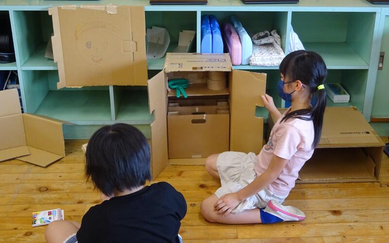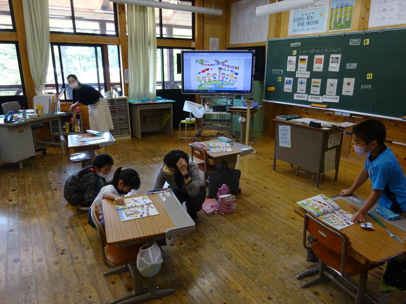 1、2年生合同の外国語活動の様子です。竹原先生にも参加していただきました。昆虫の呼び方を学んだり、ジェスチャーゲームをしたりしながら楽しく学習しました。