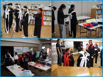 放課後活動の時間を利用して、後期課程の応援団の衣装合わせを行いました。
