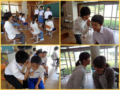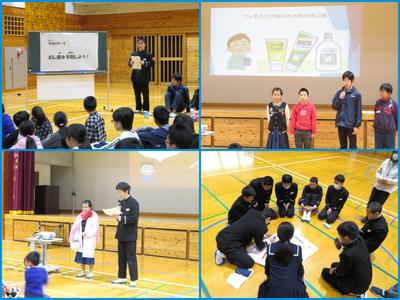 3時間目の講演会は「いのちの大切さ」について、阿蘇保健所の古林さんにお話していただきました。「1つのいのちが今ここに存在している確率は、海の中で1円玉を探すようなもの。」とそこに存在している奇跡について教えていただいたり、各学年代表で妊婦体験をさせていただいたりして、一人一人がとても大切な存在であることを改めて感じることができました。