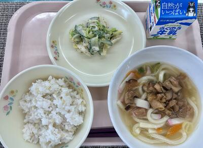 子どもたちからは、「うどんに入っている鶏肉としいたけが、少し甘い味付けでおいしかったです!」「ごまネーズ和えの白菜がシャキシャキしていておいしかったです」など嬉しい声がたくさんありました。