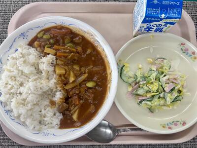 子どもたちに答えてもらったリクエスト給食の中でも、今日は9年生がリクエストしてくれたハヤシライスにしました。