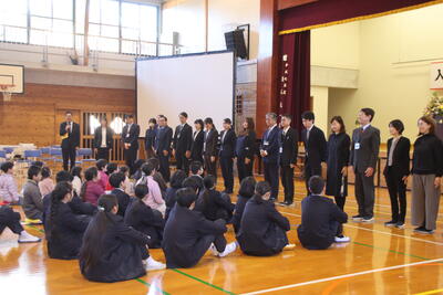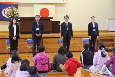就任式では新しく赴任された4名の先生方の自己紹介が