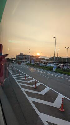 阿蘇くまもと空港に到着。朝日がきれいです。