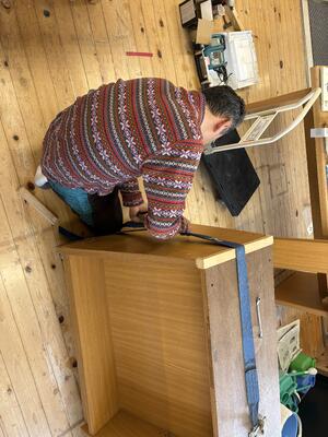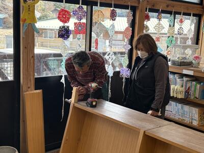 本棚もだいぶ傷んでいたため、夕方5時まで丁寧に修繕をしていただきました。改めて、地域あっての高森東学園だと痛感させられました。本当にありがとうございました。