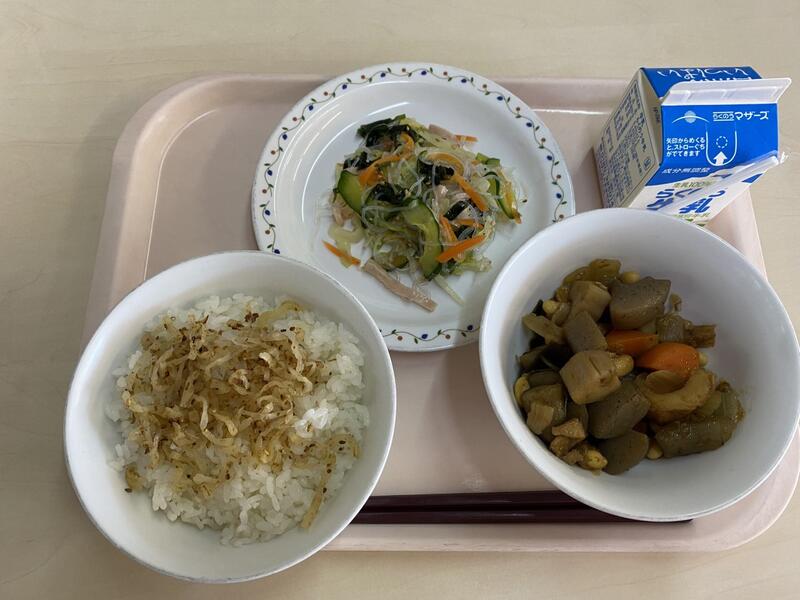 とり肉と根菜のかみかみ揚げには、にんじん・れんこん・ごぼう・しょうがの4つの根菜が入っていました。根菜には、寒い冬に体をあたためてくれる効果があります。寒い冬には、しっかり食べて体をあたためてあげましょう。