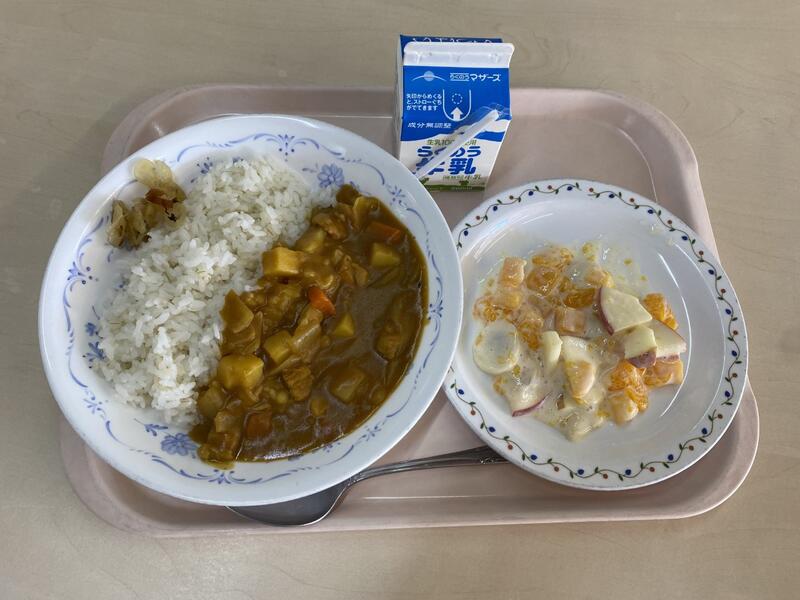 受験生応援メニュー第2弾でした。今日のカレーには、とり肉を入れています。合格をとりにいくカレーです。栄養満点のカレーをしっかり食べてリモート授業をがんばっている9年生の合格祈願をしました。
