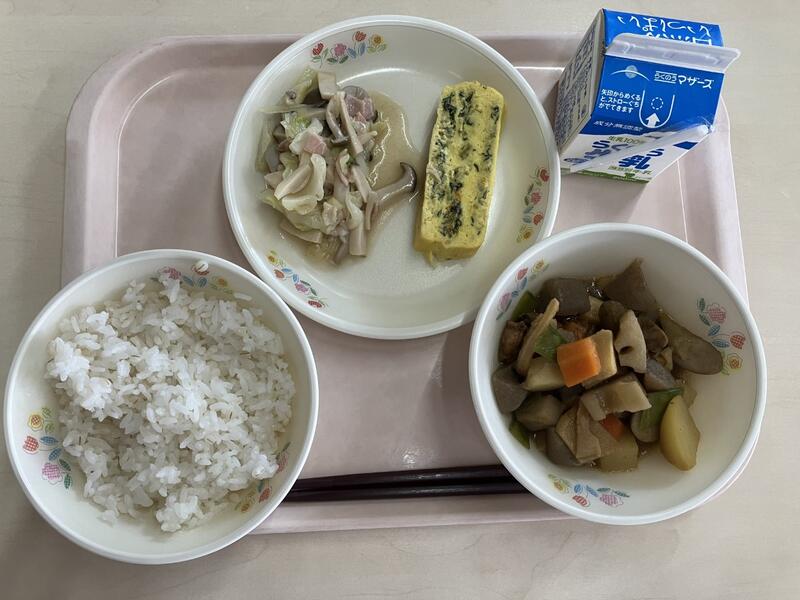たまねぎ・たけのこ・しいたけ・ピーマンを炒め、甘酢で味付けをした栄養満点メニューです。また、お酢には、酢酸(さくさん)という体の疲れをとってくれる成分が入っています。