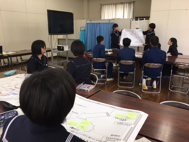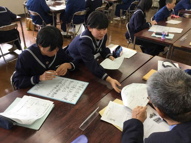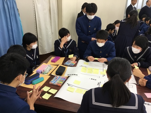 2月28日(火)、ニューリーダーワークショップを行いました。これは、昨年11月に多目的ホールで行った次期リーダーワークショップ(3年生と2年生が協働して次年度の生徒会活動を考え出すワークショップ)の続きです。今回は、県立教育センターの先生方のサポートを受けての実施でした。昨年考え出した290編のアイデアを、それぞれの委員会が、重要度、難易度の視点でマトリクス表で分類し、委員会成長モデル、年間計画に落とし込んでいきます。このようにして、今年度中に、次年度の構想と計画を完成させます。この日は、静岡県から視察に来られた賤機(しずはた)中学校の先生お二人も参観され、玉中生の姿をほめていただきました。次年度につながる素晴らしい機会になりました。