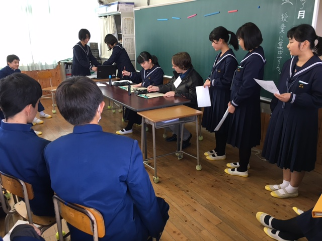 3月2日、3日、玉中校区の小学校へ挨拶運動に行きました。もちろん、小学校の児童会役員とのコラボレーションです。小学生も中学生も役員に成り立てで不慣れな部分もあったかと思いますが、新役員になって初めての大きな行事になりました。一つ一つの取組を通して、生徒会役員がリーダーとして成長していきます。児童会とのいい交流ができたと思います。