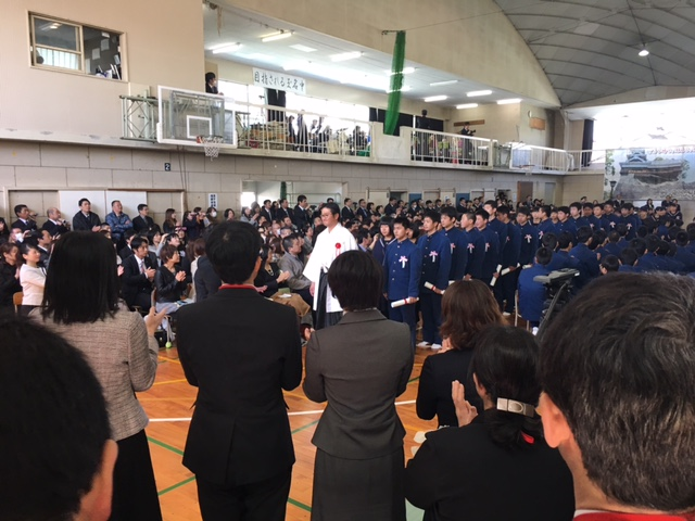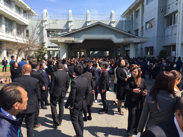 ご卒業、おめでとうございます。今は、心に大きな穴があいているような心境です。3年部の先生方は、それ以上でしょうね。写真は、左から入場後、退場、最後の見送りの様子です。とても存在感のある卒業生でした。自分たちで成長していける卒業生でした。証書を渡すときから、泣いている生徒が何人もおり、何度か私も泣きそうになりました。答辞でも生徒会長が涙声になってきたので、泣きそうになりました。歌声も素晴らしく、ここでも泣きそうになりました。学校っていいですね。