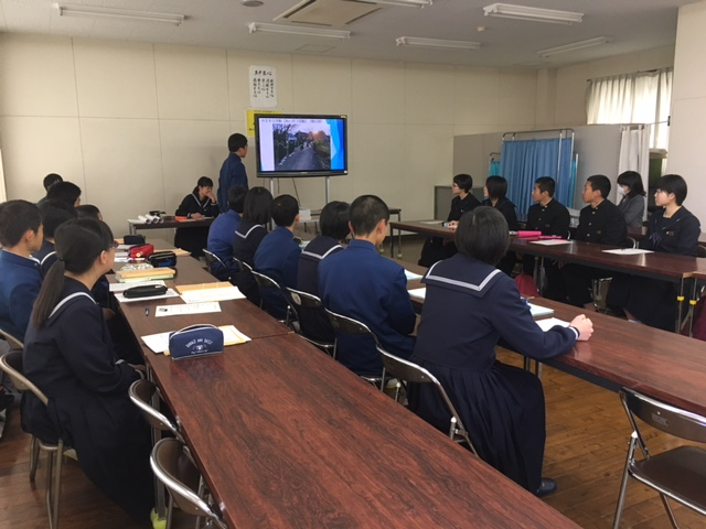 3月27日(月)、荒尾海陽中学校の生徒会執行部の皆さんと玉中生徒会役員とで、合同研修を行いました。研修の中では、それぞれの学校の取組、来年度の計画等を情報交換しながら学び合いました。今回の協働は、お互い刺激になったと思いますし、他校の文化に触れ視野を広げるという貴重な経験になったことと思います。これからの時代に求められる「主体的・対話的で深い学び」ができました。ありがとうございました。
