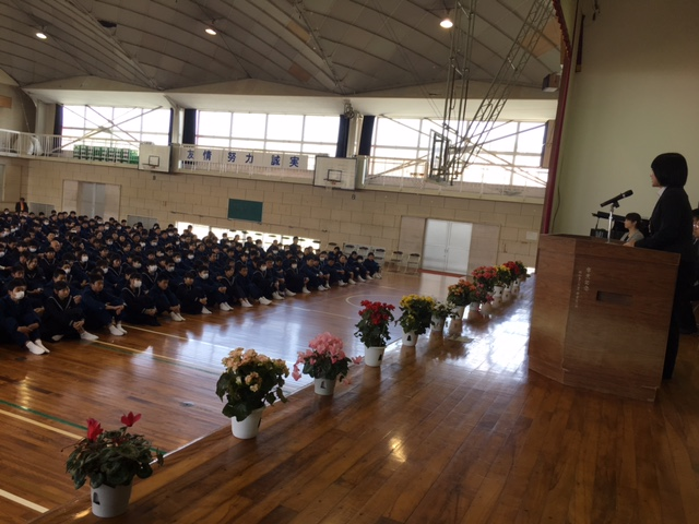 いよいよ明日に卒業式を迎えることになりました。練習ではありますが、顔は式当日のようでした。卒業証書授与の練習でも、涙目の生徒が何人もいました。花粉症ではなかったと思います。私も胸が熱くなりました。予告です。生徒の歌声が素晴らしいです。歌声で泣きそうです。今回は土曜に開催のため車の混雑が予想されます。気をつけてお出かけください。