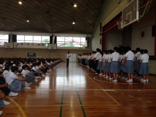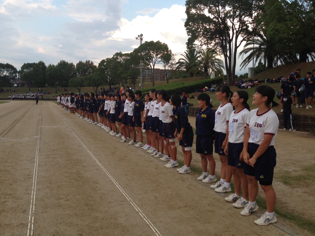 いよいよ、明日は、玉名荒尾地区の中体連陸上大会です。夏休みから早朝練習をずっと続けてきました。とうとうやり通しました。そして、明日、大会に臨みます。そこで、今日の6時間目に選手推戴式を行い、生徒会長が激励の言葉をおくりました。玉中の代表として、悔いのない試合にしてください。また、ラグビー部は、連休中に茨城県で行われる全国大会に出場します。熊本県、九州の代表として出場します。玉名中学校の名前を全国に轟かせてください。玉名中学校の全生徒、教職員、保護者等関係者の皆が応援してます。選手の皆さん、健闘を祈ります。