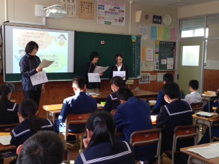 12月8日(火)、5,6時間目に「命の教育」を行いました。担任、副担任、養護教諭、九州看護福祉大の学生さんで、チームを組んで実施しました。題材名は 「思春期の心とからだを理解し、よりよい関係について考えよう」です。アンケート結果を導入に使い、望ましい異性、同性との関わり方を考えさせるために、学生さんと担任の先生方が役割演技を行い、グループで関わり方を考える活動を行いました。知恵を出し合って方法を考え、クラスで共有することができました。今日のために、田中先生、礒谷先生は相当の時間をかけて準備をしてこられました。ありがとうございました。