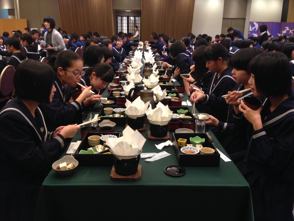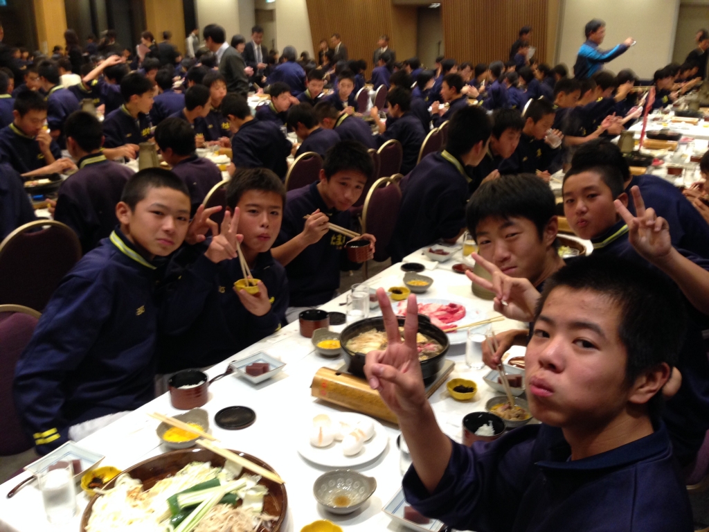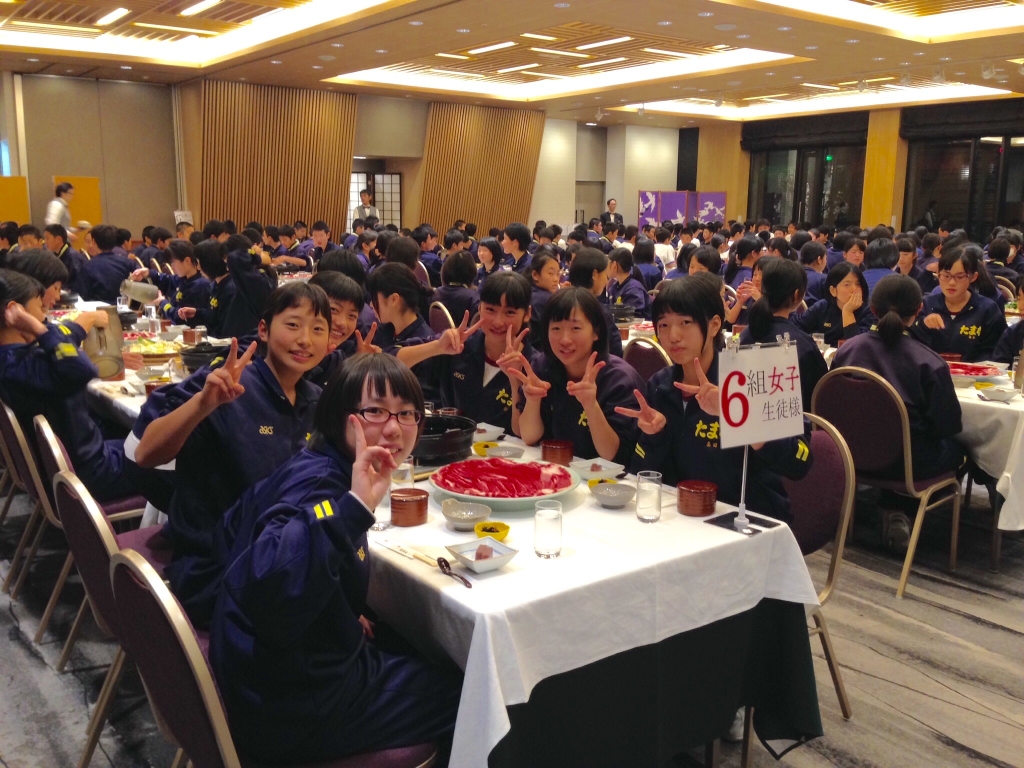 2日目の夕食です。一日中歩き回ってくたくたになったと思います。体力を少しでも回復できるように豪華でした。律する心が育った1日でした。