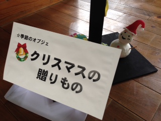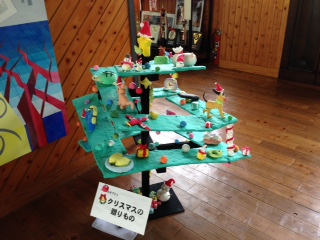 さあ、今年の登校も最終日になりました。朝、新聞を取りにいくと、玄関に見事なオブジェがありました。「季節のオブジェ クリスマスの贈りもの」です。美術部顧問の増村先生に尋ねると、前日に展示したとのことでした。なかなかの労作です。部員のクリスマスにかける夢や願いがいっぱい詰まった作品です。