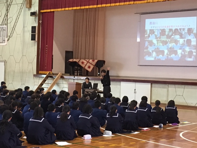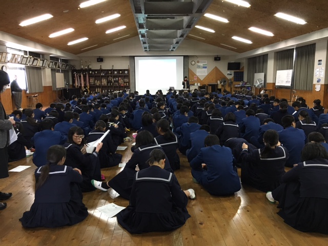 2月23日、第3回学校運営協議会を開催しました。委員の皆様には、2年生の「命の教育」、3年生のクラスマッチを参観していただき、今年度の学校評価の結果や来年度の運営協議会の持ち方等についてご協議いただきました。また、情報交換の中では、「玉中生がよく挨拶を返してくれるようになったので気持ちが良い。地域行事にもっと参加してほしい。地域ボランティアと交流させるが消極的である。」等のご意見もいただきました。大変ありがとうございました。写真は、2年生「命の教育」の様子です。