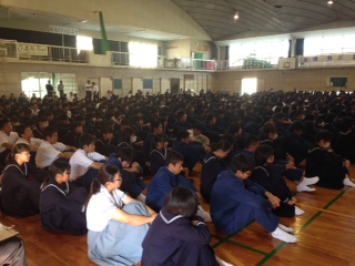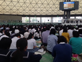 今日は(10月10日)熊本県人権子ども集会がパークドームで行われました。名称は、正式には、「部落差別をはじめあらゆる差別をなくす熊本県人権子ども集会」です。子どもたちが運営を行います。玉名中からも生徒会執行部を中心に、2年生も参加しました。体験・活動報告の中で、大津北中学校の「福島(県)を独りぼっちにすることは、隣にいる人を独りぼっちにすることと同じ」という言葉を掲げた取組は、同じ中学校として、大変参考になりました。玉名中でも人権宣言の見直しに取りかかっています。今日の学習を、後期からの生徒会活動に役立てて行きます。