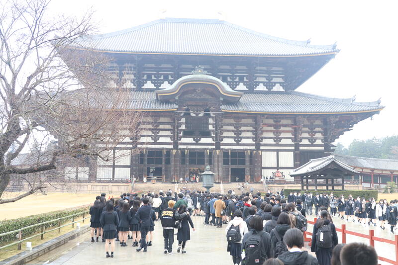2年生の修学旅行は、最後の見学地である奈良公園に到着しました。