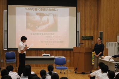 講演後の感想文からは、生徒たちが出産の大変さを感じ、周囲の人々への感謝の気持ちを新たにしたことが伝わってきました。また、「自分が生まれてきたことは奇跡であり、自分や周りの命を大切にしたい」との思い、さらに、思春期の自分の態度や家族との向き合い方を振り返り、今後は感謝の気持ちを忘れずに接していきたいという決意が見られました。