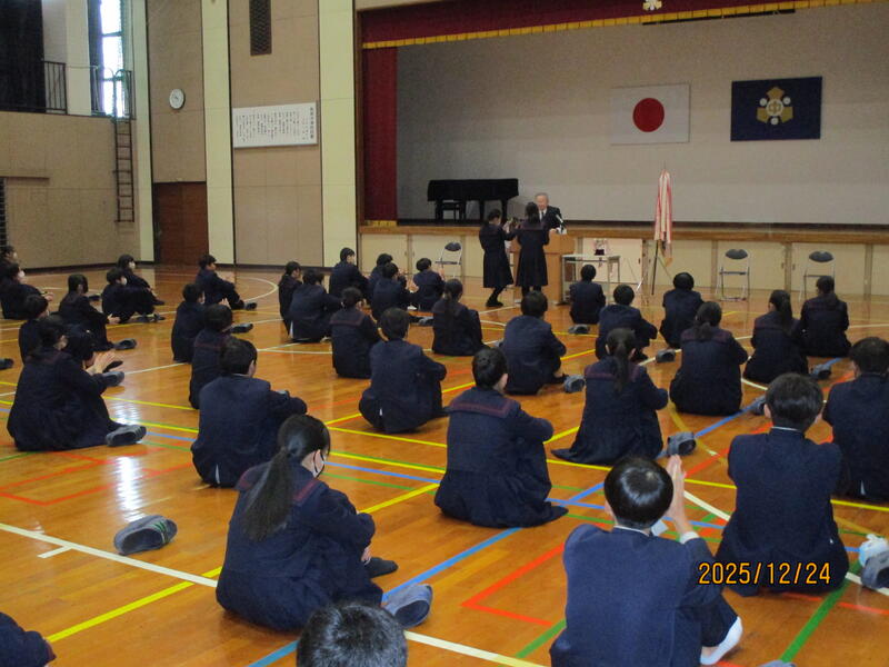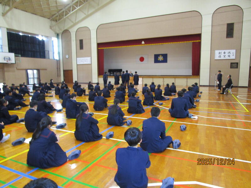 ◎24日(水)は後期前半終了日。休み前集会で多くの表彰を行ったあと、新生徒会役員の認証式を実施しました。