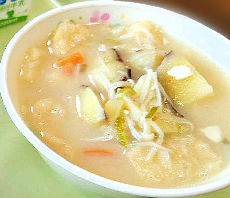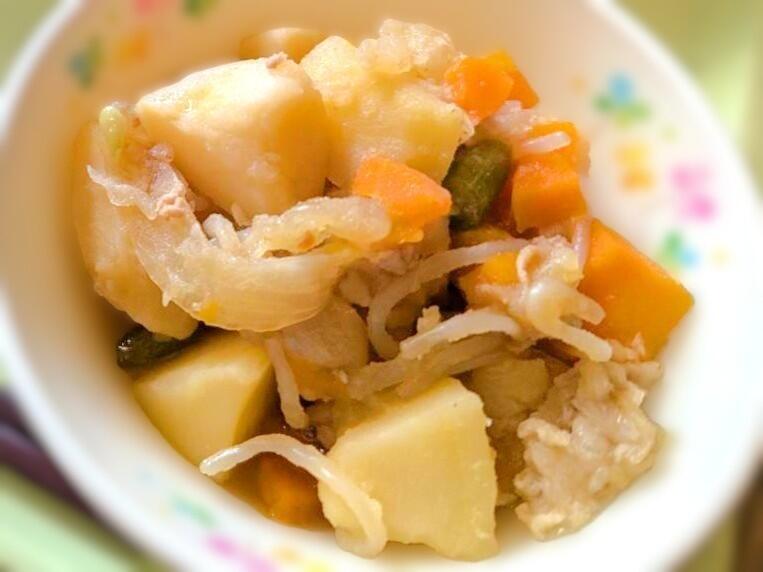 今日(きょう)の「さつまいもシチュー」は、心(こころ)も体(からだ)も ホッ!とする温(あたた)かい一品(いっぴん)です。
