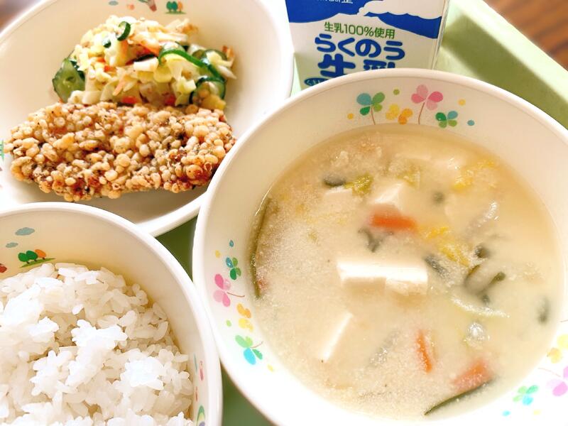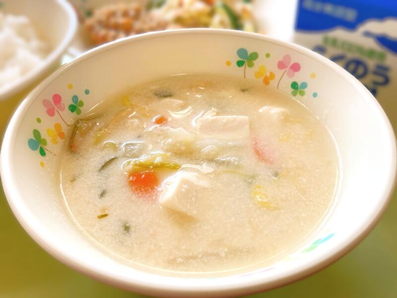 【今月(こんげつ)の みそ汁(しる)】は、『呉汁(ごじる)』です。