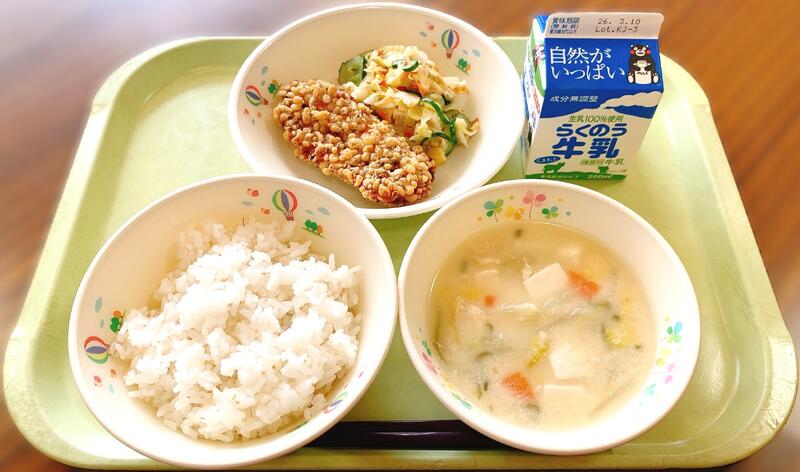熊本県(くまもとけん)では、19日前後(ぜんご)の日(ひ)に「ふるさとくまさんデー」と銘打(めい う)った献立(こんだて)が実施(じっし)されています。