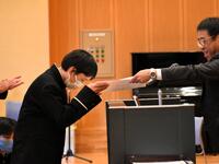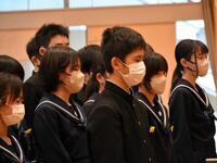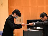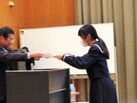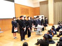 12月24日(水)、全校集会にて「生徒会役員への感謝状授与および新役員への委嘱状授与式」が行われました。