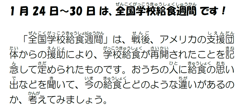 『全国学校給食週間』【1月24日~30日】