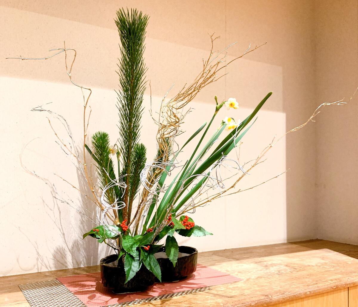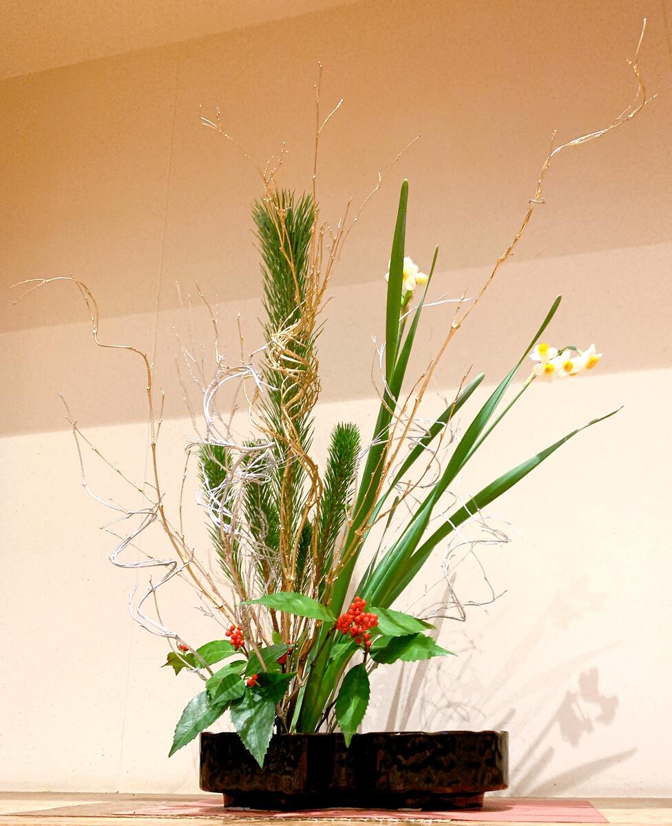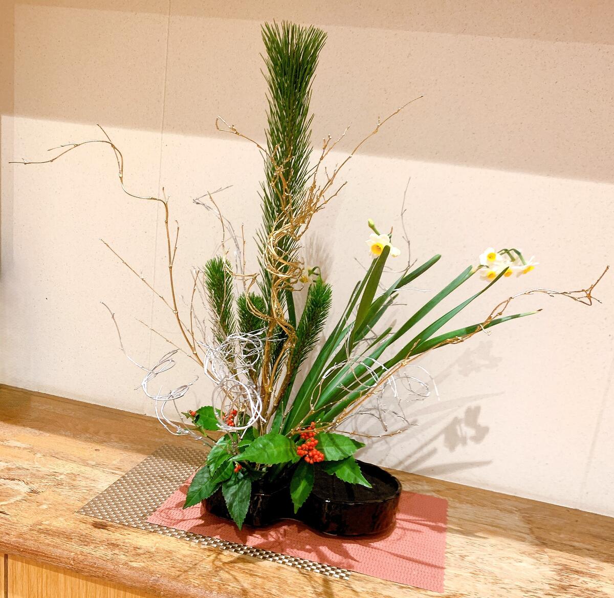 今回は、新年の始まりにふさわしい華やかな生け花を飾ってくださいました。