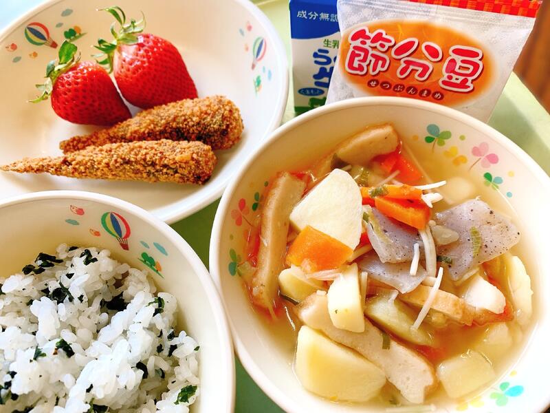 今日(きょう)は、 【節分(せつぶん)献立(こんだて)】です。