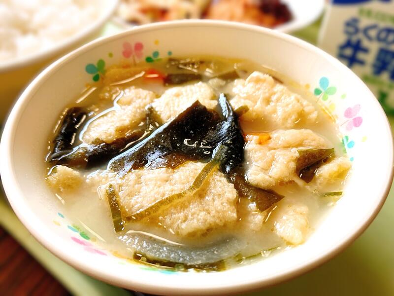 『難関(なんかん)突破(とっぱ)』の願(ねが)いを込めた『南関(なんかん)あげ』の「みそ汁(しる)」です。
