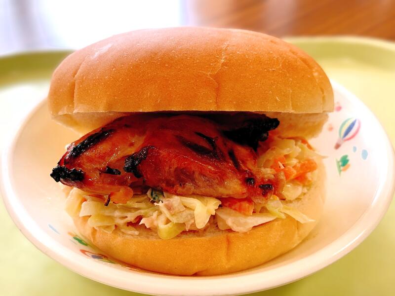 丸(まる)パンに「ロースト チキン」と「ツナ サラダ」を豪快(ごうかい)にダブルで挟(はさ)んでもOK、気分(きぶん)でそれぞれを別々(べつべつ)に楽(たの)しんでもOK。