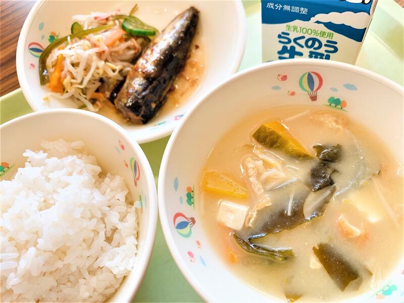 今月のみそ汁は「オクラ、かぼちゃ」です。