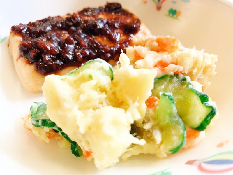 今日のサラダには、秋が旬(しゅん)の「さつまいも」を使ってあります。