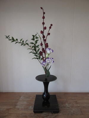 ・今日の「生け花」です。紅葉が深秋を感じさせてもらえます。