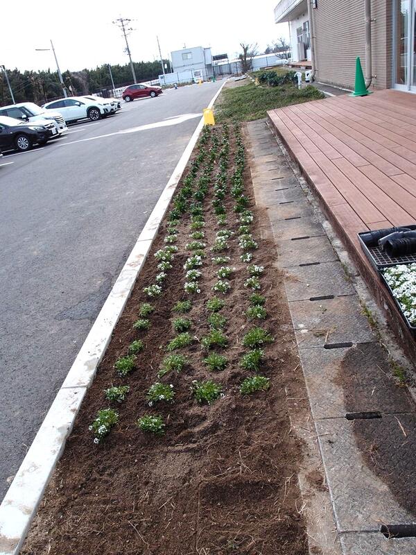 2月19日(木)放課後、事務職員の○○先生、教員業務支援員の○○先生の事前準備により、環境委員の子どもたちが花苗を植えて、図書室前に新しい花壇が完成しました!