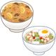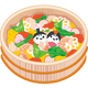 生姜(しょうが)ごはん 牛乳(ぎゅうにゅう) トマト団子汁(だんごじる) 厚焼(あつ や)き たまご茎(くき)わかめ の 甘酢(あまず)和(あ)え