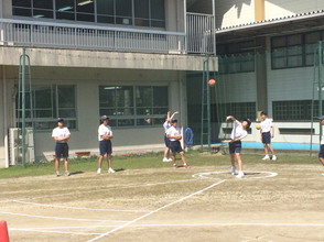 領域は球技のバドミントンで、入念なショットの練習を、グループごとに課題を話しあわせながら行い、最後はグループ対抗のミニゲームを行いました。